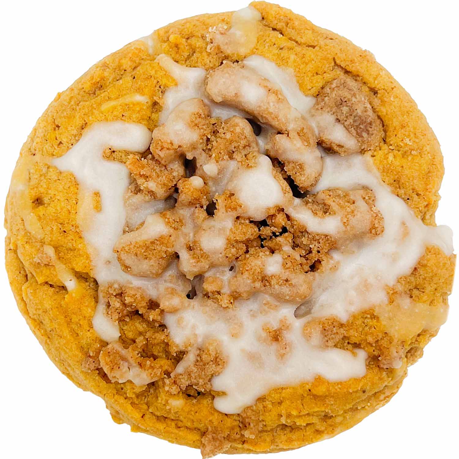 Autumn's favorite flavor gets the streusel treatment! Our Pumpkin Streusel Cookie combines warm pumpkin spice with a delightfully crunchy brown sugar streusel topping and smooth vanilla glaze. Each bite delivers cozy seasonal vibes with the perfect balance of spice, sweetness, and texture.